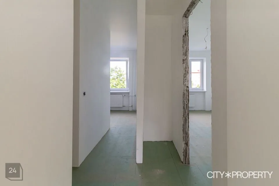 Korter on valmis lõppviimistluseks, seinad on krunditud vaja värvida ja paigaldada parkett. Võimalik osta sellisel kujul hinnaga 55 000.- või siis võtmed kätte lahendusega (sisaldab köögimööblit koos tehnikaga, lagede, seinte ja põranda viimistlust ning mööblit) 79 000.-.