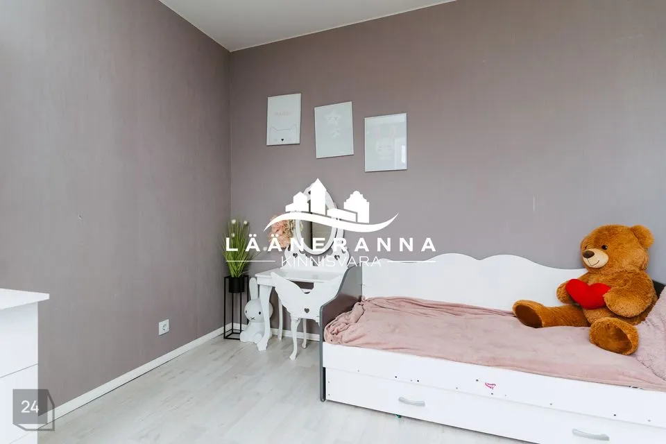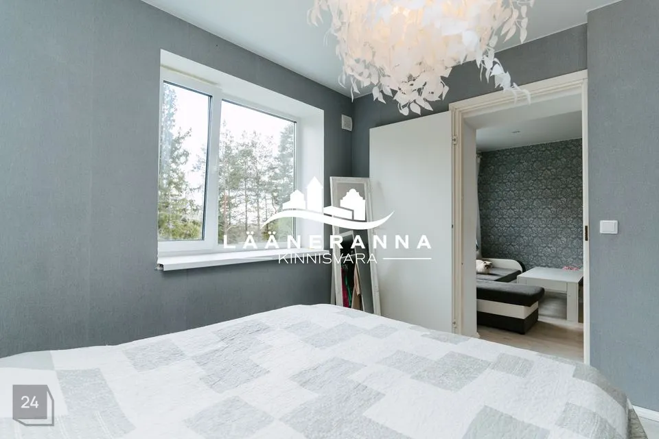 Aknad on vahetatud plastikakente vastu. Põrandaid katab laminaatparkett. Seinu viimistleb tapeet. Kodu teeb soojaks õhksoojuspump. Võimalik ehitada juurde ka kamin. Vannitoas on heledates toonides kahhelplaat, põrand on elektriküttega. Elutoa-ja väiksem lapse magamistoa mööbel on hinna sees.