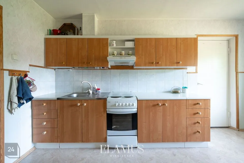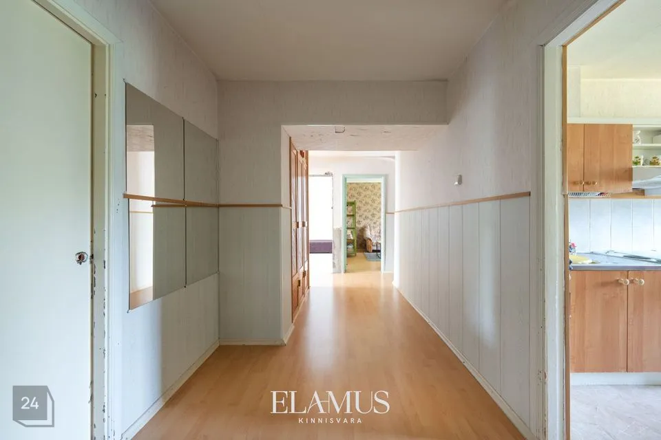 Põrandatel laminaatparkett, puitlaudis või linoleoum. Seinad kaetud kas värvi või tapeediga, kohati ootavad uut viimistlust. Laed kaetud värvitava seinexiga.