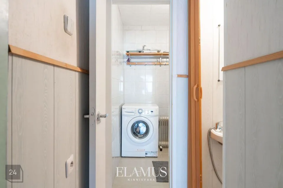 Korteri koosseisus on avar esik, köök, millest pääseb ühele rõdule ja ka suurde sahvrisse, 3 magamistuba, millest 1 on rõduga, elutuba ja eraldi asetsevad WC ja pesuruum.