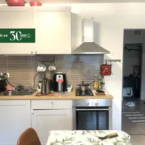 district heating; balcony; apartment is fully renovated. Open kitchen in living room has new laminate flooring, new