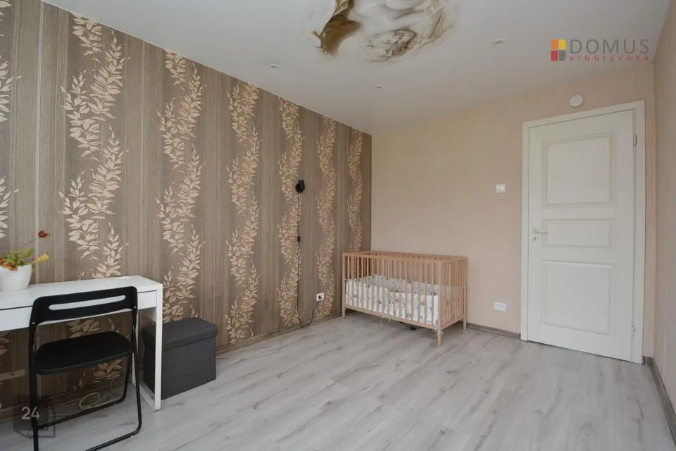 Kolmetoaline korter: suur esik, avatud köögiga elutuba, kaks magamistuba, mille vahele jäävad vannituba ja tualettruum. Ühest magamistoast saab rõdule, mis on vaatega mänguväljakule. Korterisse jäävad ainult köögikapid, kõik muu viiakse välja. Korter vajab mingil määral renoveerimist.