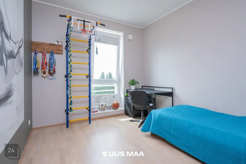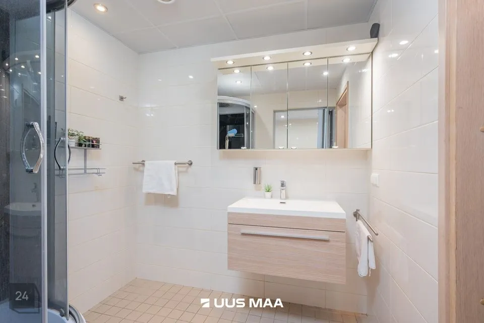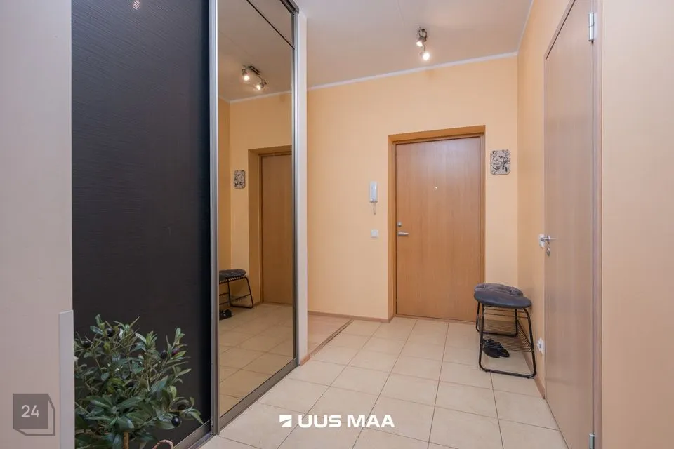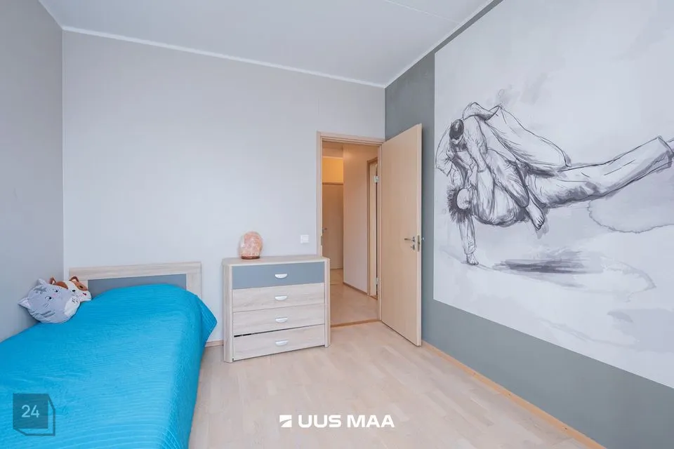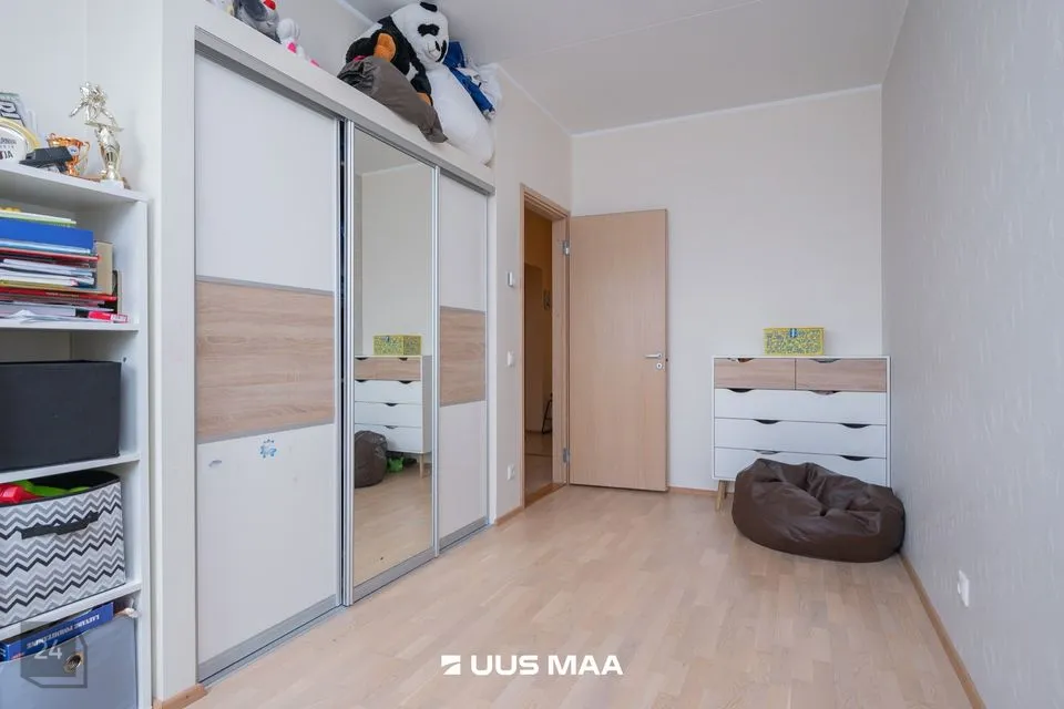 Korteris on avar avatud köögiga elutuba, 3 eraldi asetseva magamistuba ning vannituba ja tualettruum. Kõige suuremas magamistoas on praktiline Walk-in garderoob, kus asetsevad riiete jaoks riiulid ja mitmed stanged. Lisa garderoobikappe pole vaja.