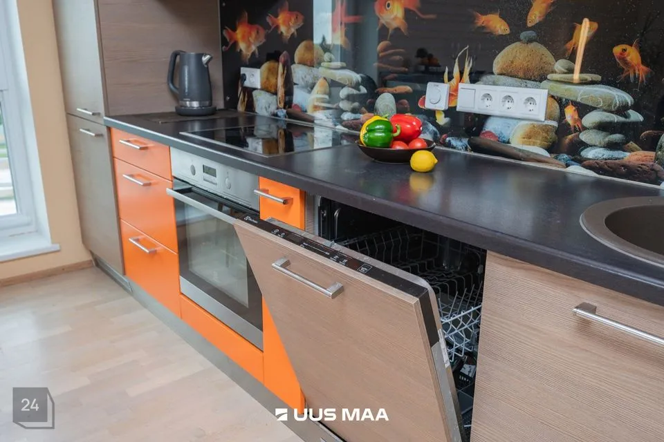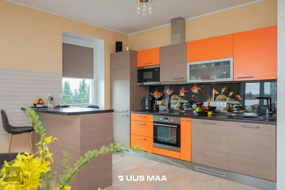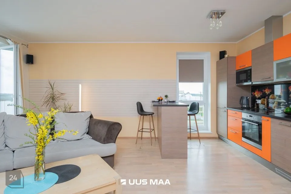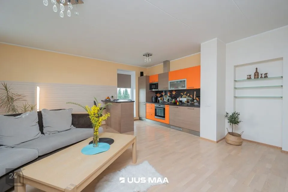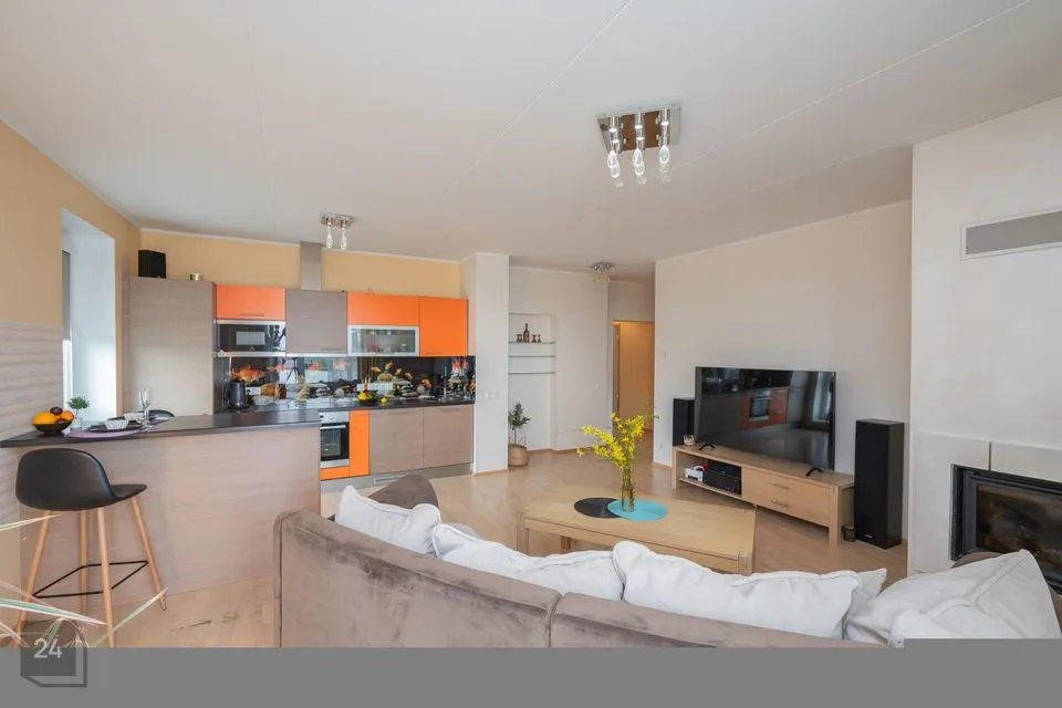 Elutuba-köök on mõnusalt suur, kus asub köök, söögituba ja puhkeruum. Elutoas on kamin, mis lisab hubasust ja soojust. Siin on ka pääs hommikupäikesega rõdule. Korteri suureks plussiks on enda kinnise sisehooviga õuelala. Rõdust on võimalik vaadata antud õueala, kus asuvad liumägi, liivakast ja teised lasteatraktsioonid.