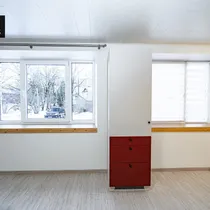 Elutoa ja köögi aknad asetsevad kortermaja ette, magamistoa aken kortermaja taha.