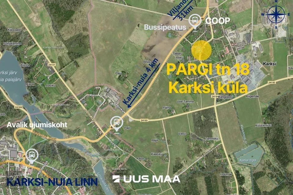Viljandi linn jääb 31 km kaugusele.