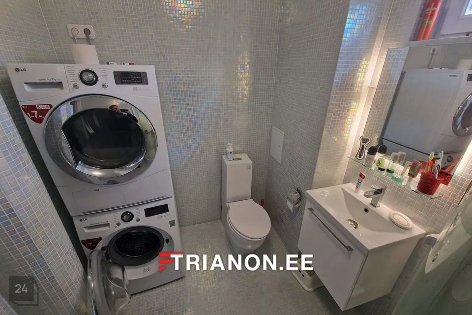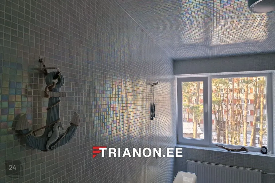 Müüa 3-toaline korter Narva-Jõesuus, 58,4 m2, 3/3 korrus, suurepärases seisukorras. Kapitaalne renoveerimine. Keskküte, elektripliit, wc ja vannituba eraldi, vann, dušikabiin, boiler, avatud köök, PVC aknad, uus elektrijuhtmestik, uued kütteradiaatorid, uued siseuksed, seinad - tekstuurkrohv, arvestid (vesi, elekter), toad eraldi, põrandad: tubades - naturaalne tammeparkett, vannituba - täielikult plaaditud, metallist välisuks, fonolukk, parkimine maja juures. Hinna sees on ka mööbel (sh: köögikomplekt naturaalsest puidust - valgustatud saarepuit, skinal - karastatud klaasist originaalmustriga) ja tehnika (sh: külmkapp, pesumasin, kuivati, nõudepesumasin, mikrolaineahi funktsiooniga ahi). Telliskivimaja, ehitatusaasta 1986, energiaklass on määramata. Korteriühistu. Suurepärane asukoht: kogu linna infrastruktuur - lähedal, kuid ei ole müra. Mereni - 900 meetrit, jõeni - 400 meetrit.