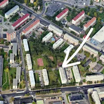 Korteri peamine eelis on selle mugav asukoht. Maja vastas asub teatrikunsti keskus Vaba Lava. Jalutuskäigu kaugusel on Narva linnus (700 meetrit), Jõe promenaad, Tartu Ülikooli Narva Kolledž ja Narva Eesti Gümnaasium (900 meetrit). Läheduses asuvad ka Lidl ja Fama keskus.
