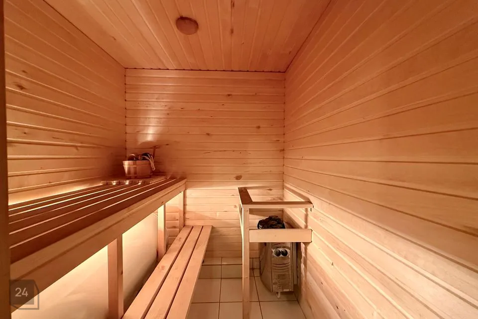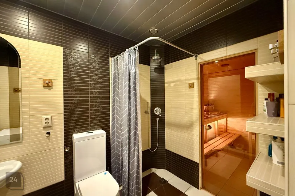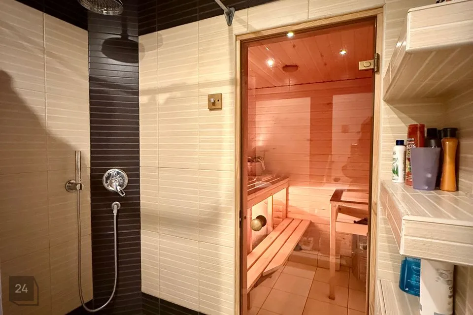 Kaasaegne duširuum koos saunaga tõeliseks lõõgastumiseks.