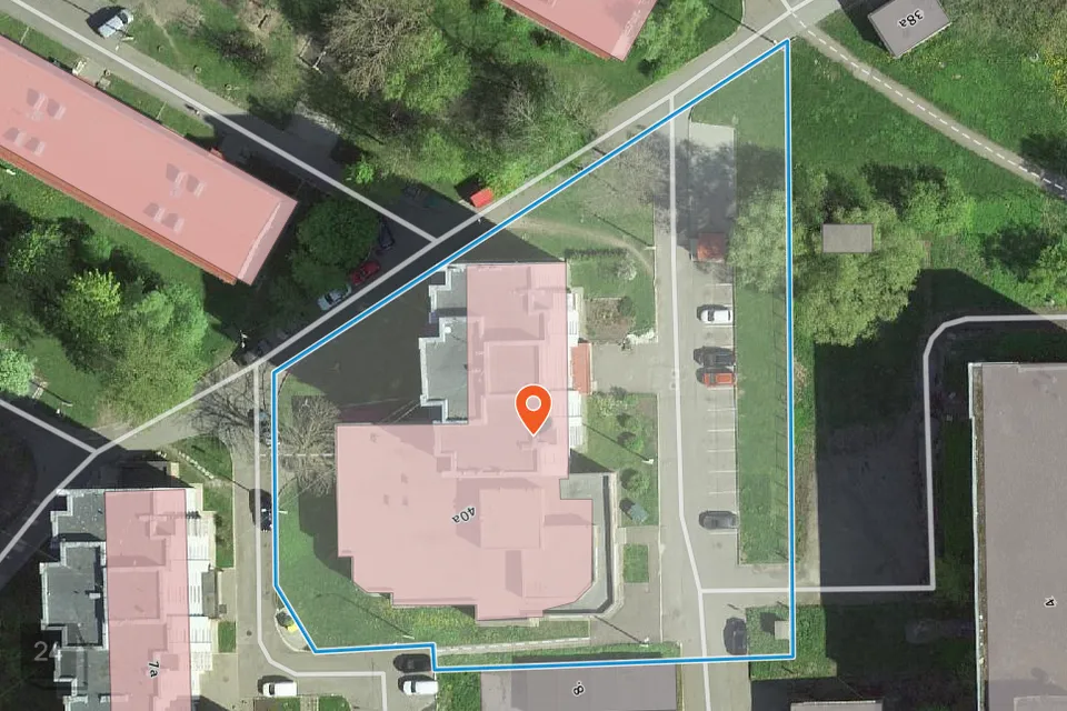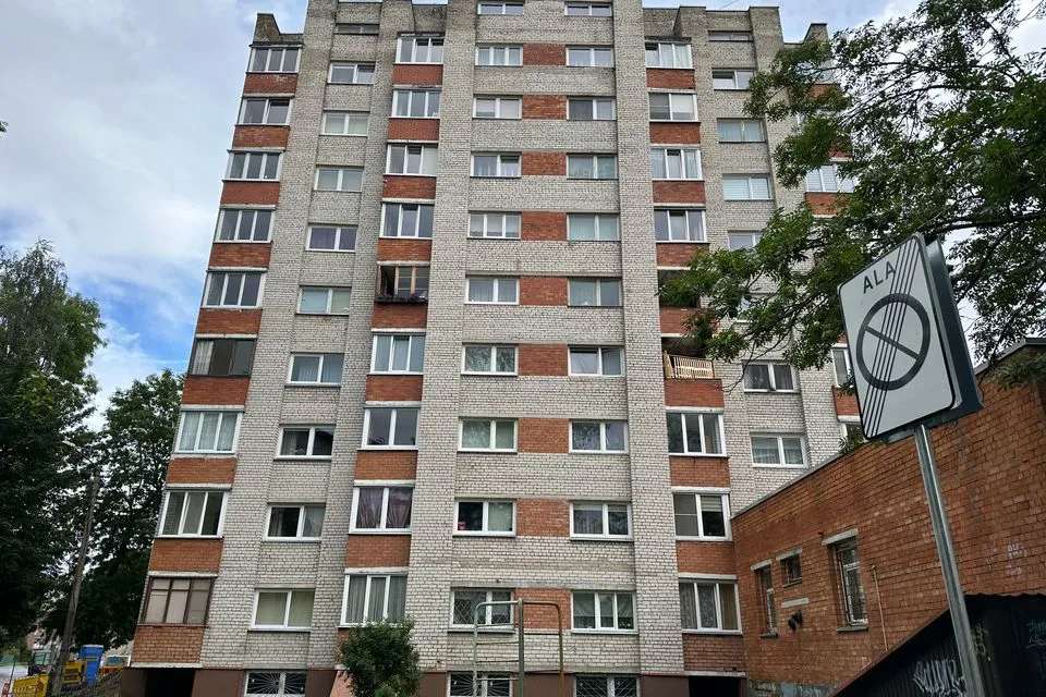 Maja ees on parkla, mis on mõeldud ainult maja elanikele parkimislubade alusel.