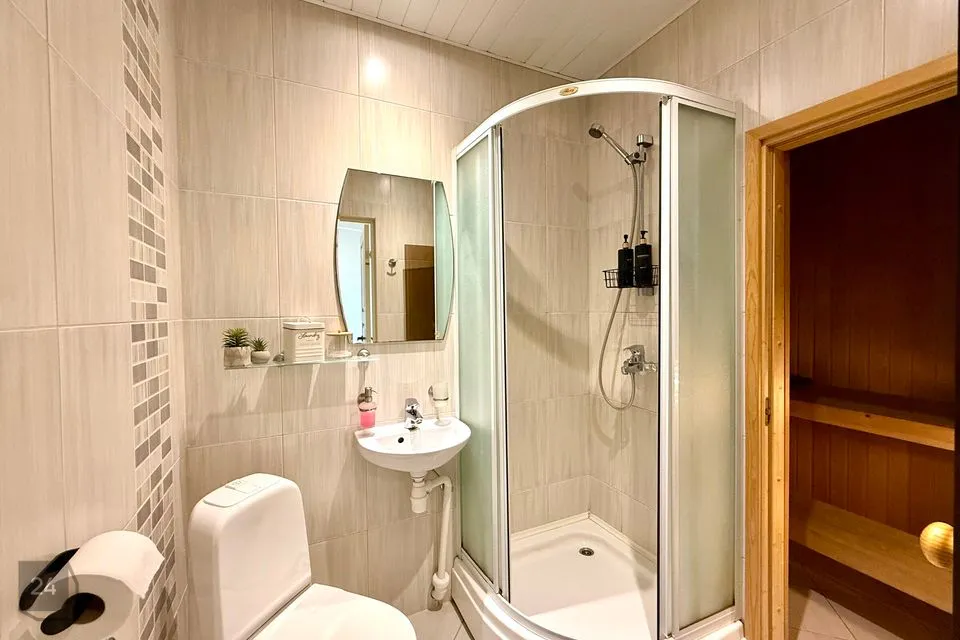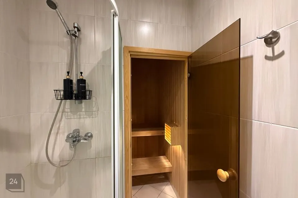Особенность квартиры — собственная сауна и душ, где можно расслабиться в любое время.