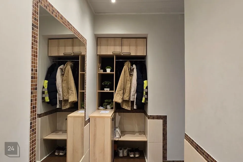* Avatud esik suure peegli ja mugava kohaga üleriiete ning jalanõude jaoks.