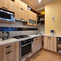 * Sisustatud köök integreeritud tehnikaga ja piisava kapipinnaga.