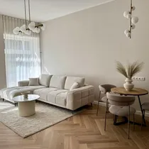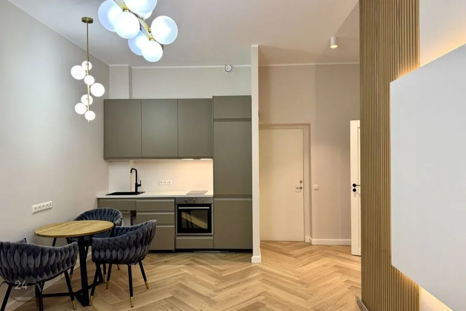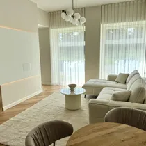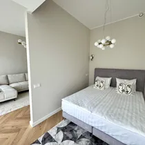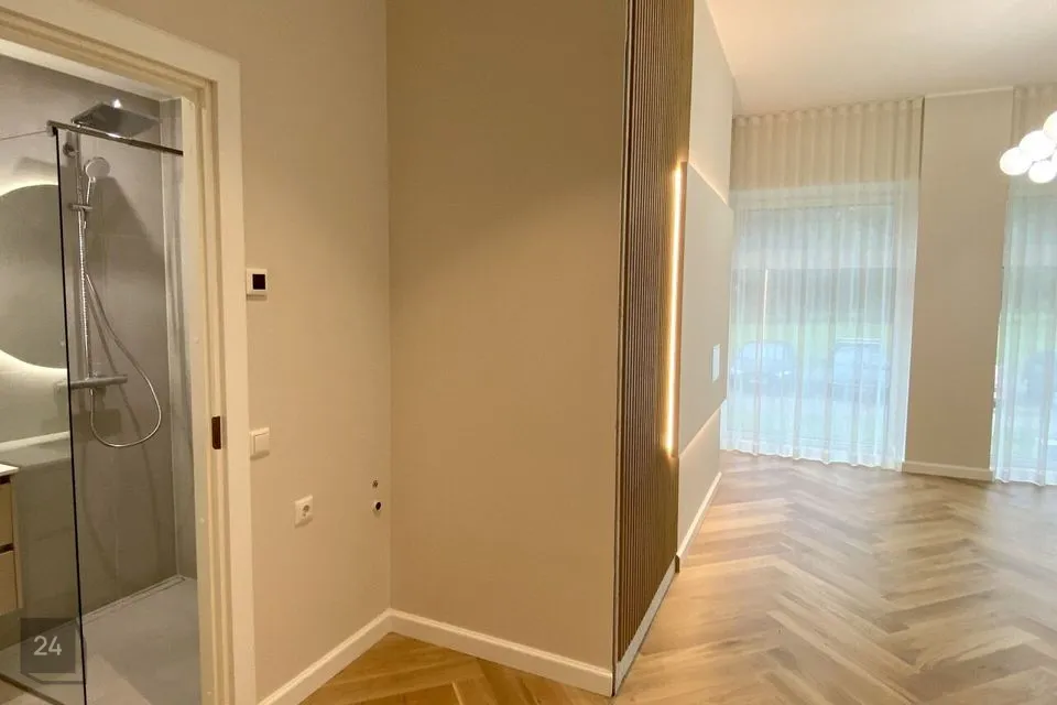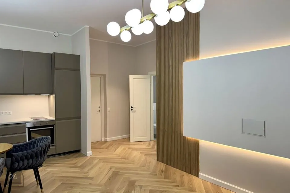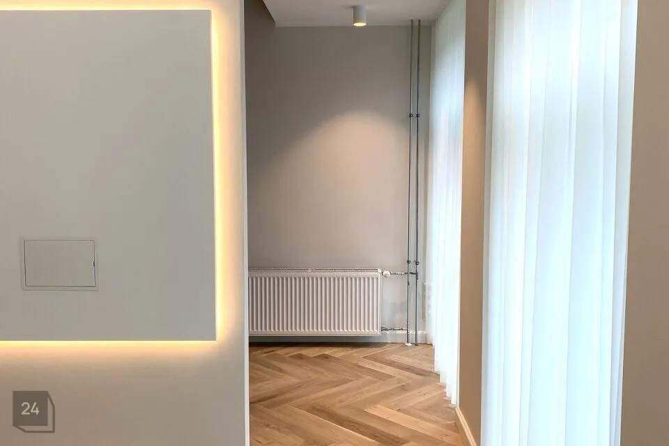 Põrandatele on paigaldatud naturaalne (kalasaba) tammeparkett, seinad on värvitud heledates toonides Teknose värvidega.