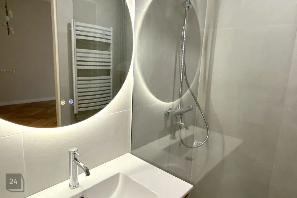 Dushiruumi põrandad ja seinad on kaetud luksuslike täismass plaatitega.