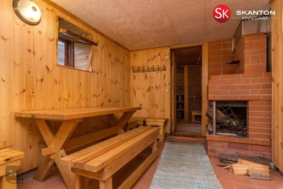 Küte ja ventilatsioon: ahi, pliit ja elekter. Sauna eesruumis avatud kamin.