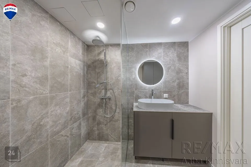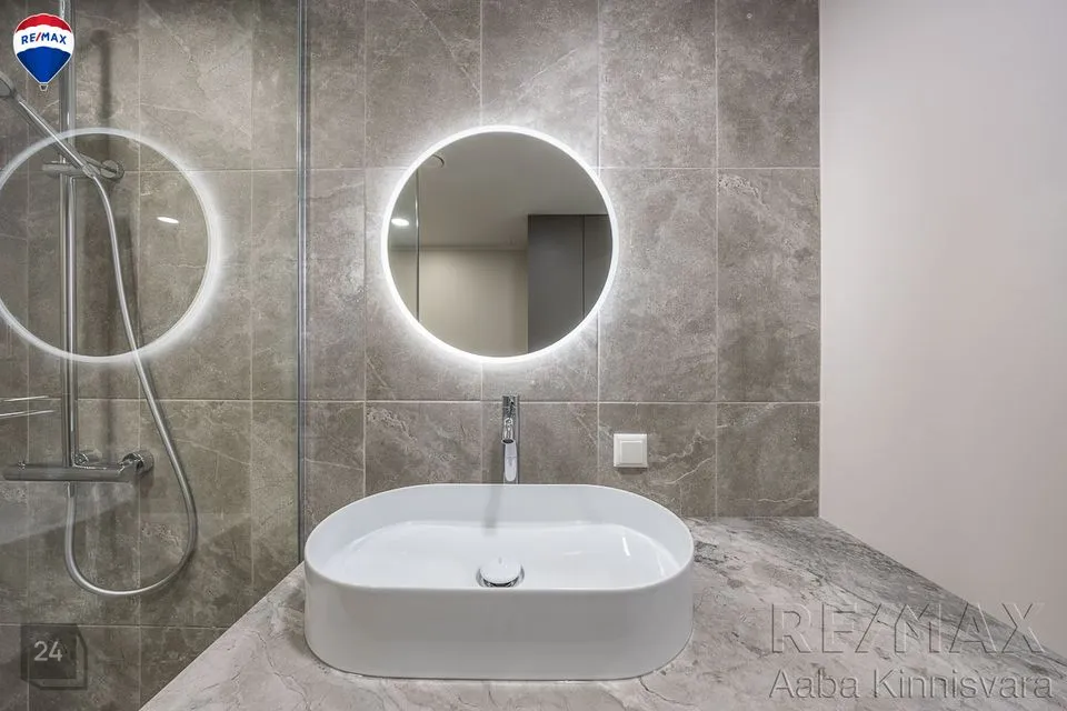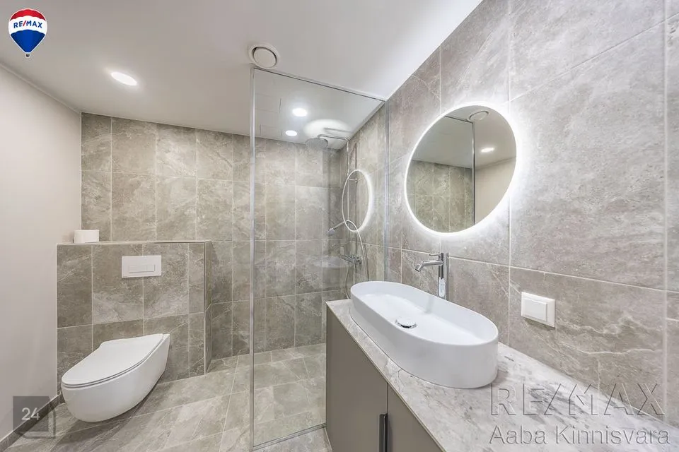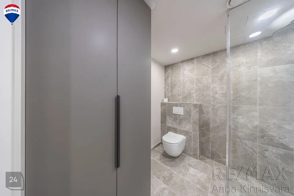 Siseviimistlus on rahulik ja heledates toonides, mis jätab uuele omanikule palju võimalusi meeldiva sisustuse valimiseks. Seinad on värvitud ja põrandatel on praktiline LVT kate. San ruumides on põrandal ja seintes keraamilised plaadid. Korterisse on paigaldatud sanitaartehnika.