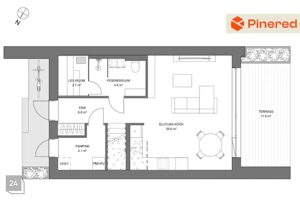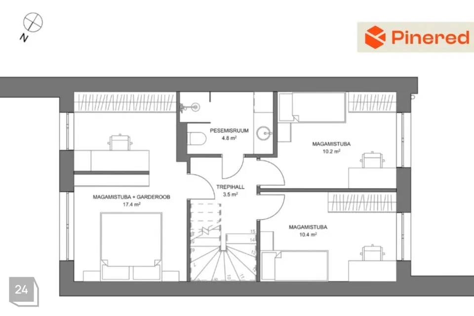 Selles kahekordses kodus on kolm magamistuba, avatud köögiga elutuba, mahukas panipaik ning kaks vannituba, millest ühes on saun. Siseviimistlust iseloomustab ajatu Skandinaavia disain, kus kohtuvad tumedad puitpinnad tagasihoidlike hallikate toonidega. Ridaelamute ehitamisel on lähtutud põhimõttest, et igal boksil on piisavalt privaatsust ja sinna kumab õhtupäike. Kodud vastavad A-energiaklassile ning vesipõrandaküte võimaldab talviseid olusid muretult nautida.