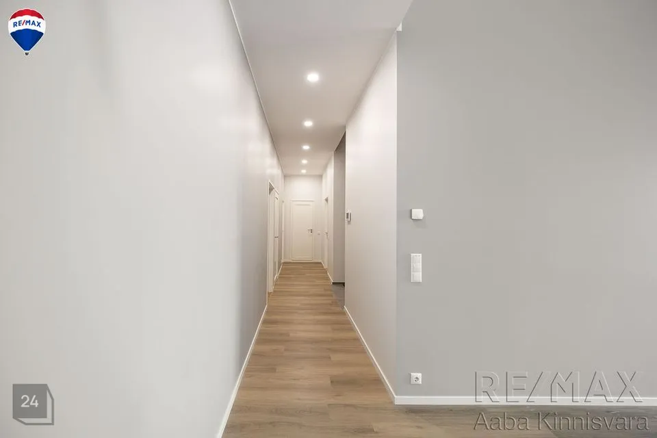 Siseviimistlus on rahulik ja heledates toonides, mis jätab uuele omanikule palju võimalusi meeldiva sisustuse valimiseks. Seinad on värvitud ja põrandatel on praktiline LVT kate. San. ruumides on põrandal ja seintes keraamilised plaadid. Sisustuse saab uus omanik valida vastavalt oma soovidele. Vajadusel saame pakkuda enda klientidele sisekujundaja teenust ja soodsamaid pakkumisi mitmelt suuremalt kui ka väiksemalt mööblitootjalt.