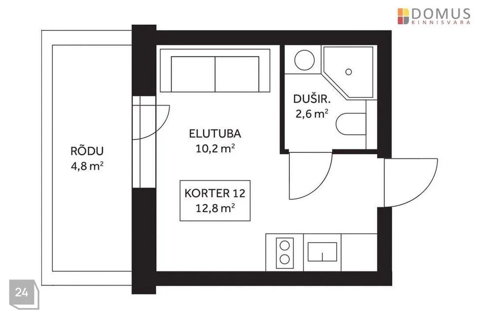 Korter (12,8 m2) on möbleeritud ja sisustatud, korteriuksel koodlukk ning müüakse täiskomplektselt.