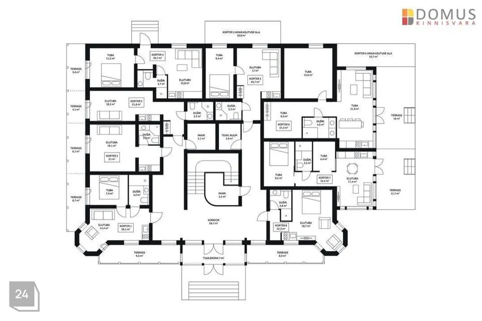 Suvituse 7-12 külaliskorteri juurde kuulub ka korteri kohal olev sama suur pööninguosa, mis ostjal võimalik ise väljaehitada. Korteril on rõdu 4,8 m2.