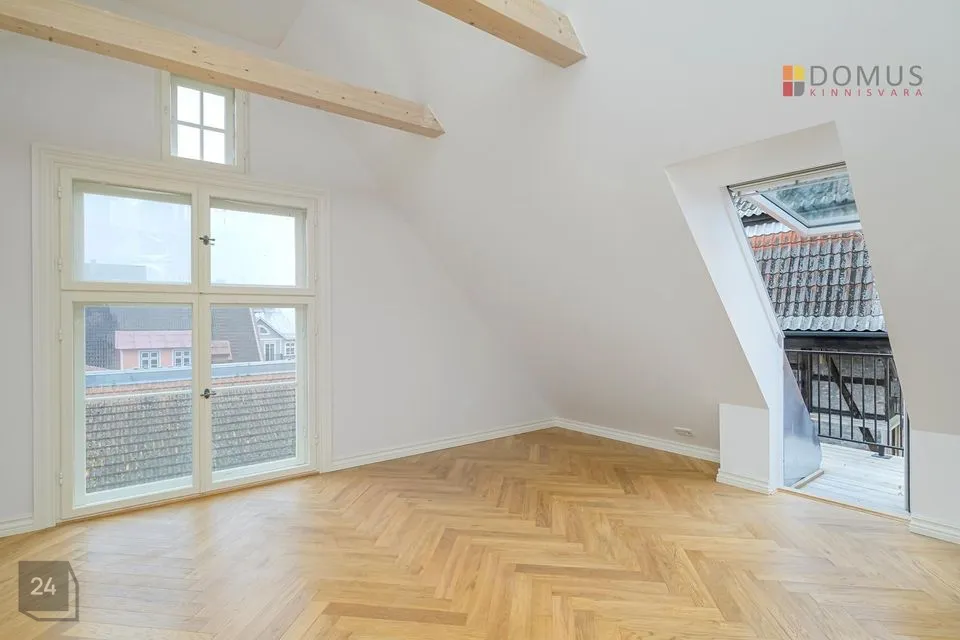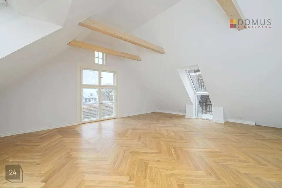 Müüdav korter on 2-toaline, 61,6 m² on mõõdetuna 1 m kõrguselt, 52,1 m² on pind 1,6 m kõrguselt ja põrandapinda on lausa 74,3 m². Avar korter asub läbi kahe korruse (III-IV) ja elutoast avaneb läände 7 m² katuseterrass. Korterisse on paigaldatud konditsioneer. Pesuruumis on vann.