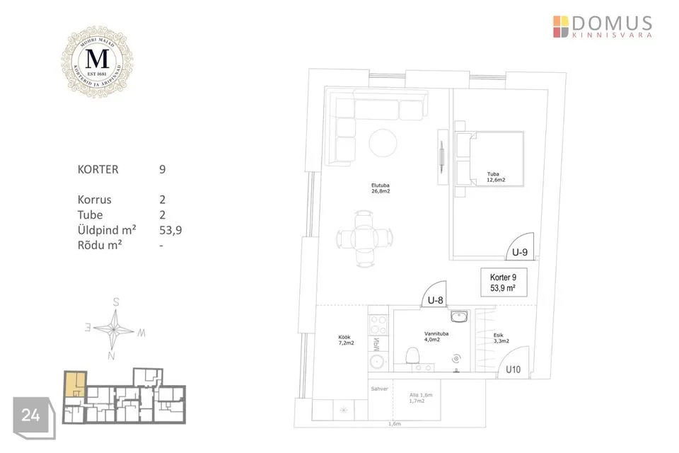 Müüdav korter on 2-toaline, 53,9 m² ja asub II korrusel. Selle korteri hind ei sisalda käibemaksu ja ei lisandu hinnale käibemaksu.