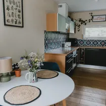 Korteris on kolm tuba, elutuba ja köök on koos. Rõdule pääseb elutoast. Elutuppa paistab päike hommikust õhtuni, seega korteris on palju loomulikku valgust. Esikus ja magamistoas on suured liugustega kapid. Korteril on ka suur pööning.
