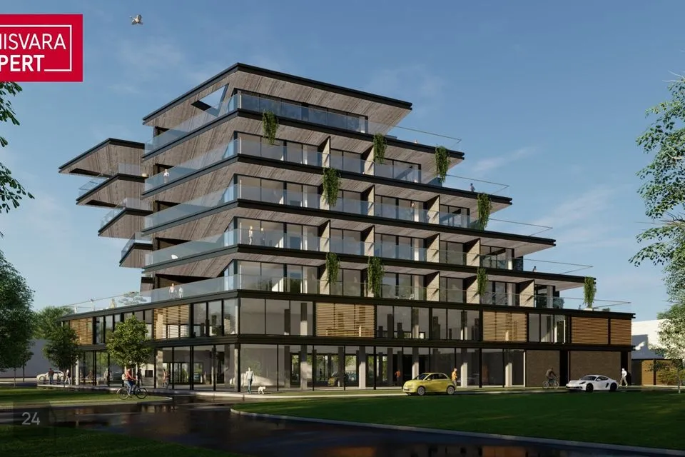 Pärnu jõe ja uhiuue silla kõrvale on linnakeskuses 2026 suvel valmimas elegantse arhitektuuriga ning ainulaadsete vaadetega 7korruseline elu- ja ärihoone – Lai 20.