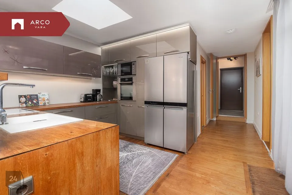 Selles korteris tunneb end mugavalt ka suurem pere, kuna selle hästi läbimõeldud planeeringu koosseisu kuuluvad avatud köök-elutuba, neli eraldi magamistuba, kaks pesuruumi (millest ühes on ka vann), walk-in garderoob, esik ning ruumikas panipaik, kust pääseb ka keldrisse. Ja see pole veel kõik, omapära lisavad korterile kinnine sisehoov ehk aatrium ja isiklik aianurk.