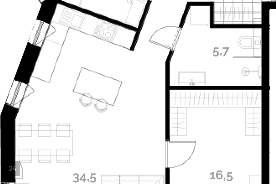 Merepoolne 3toaline nurgakorter nr 8 (83 m² + rõdu 12,5 m²) asub maja II korrusel ja on vaadetega otse merele ja rannaniidule. Korteril on avar elutuba-köök (34,5 m²), 2 magamistuba (16.5 m², 15,3m² ) ning duširuum/WC (5,7 m²) ja eraldi WC 1,7 m² samuti walk-in garderoob esikus. Tubadel on maast-laeni lükandaknad, kust mõlemast toast pääs ka suurele lõunapoolsele rõdule. Mugava sisekliima korteris tagavad vesipõrandaküte ja soojustagastusega ventilatsioon, lisatasu eest on võimalik tellida korterisse jahutus.