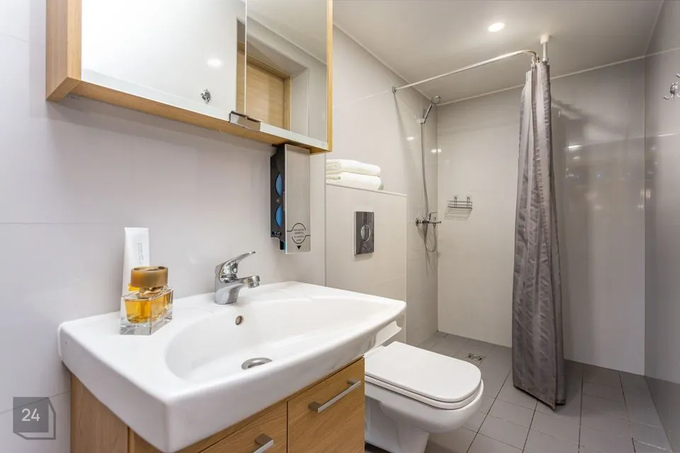 Korter on praktilise ruumilahendusega ja hubane. Tubade põrandaid katab vastupidav laminaatparkett, duširuumis on Hansgrohe segistid, Villeroy & Boch keraamilised plaadid ja reguleeritav elektripõrandaküte.