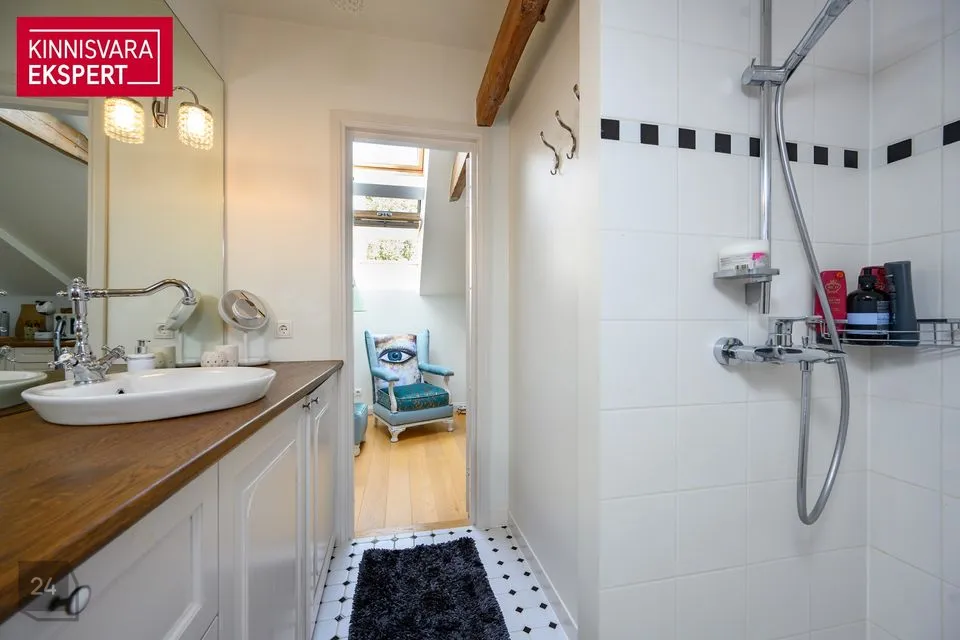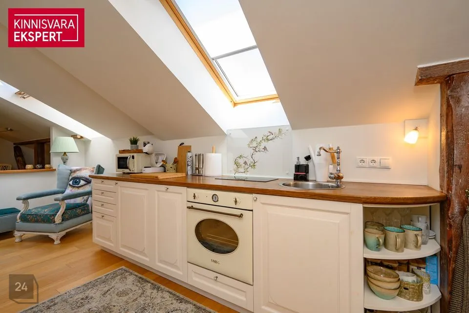 Maitsekale sisekujundusele annavad hubasust katuslaed, vanad puittalad, akende esised "lesilad" ja katuseaknad.