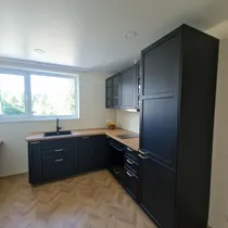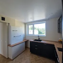 Uus integreeritud köök kus olemas külmik, induksioon pliit, ahi ja ka nõudepesumasin.