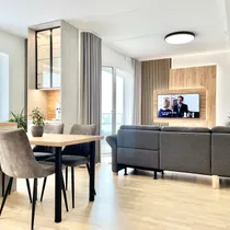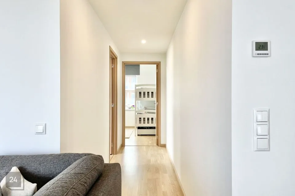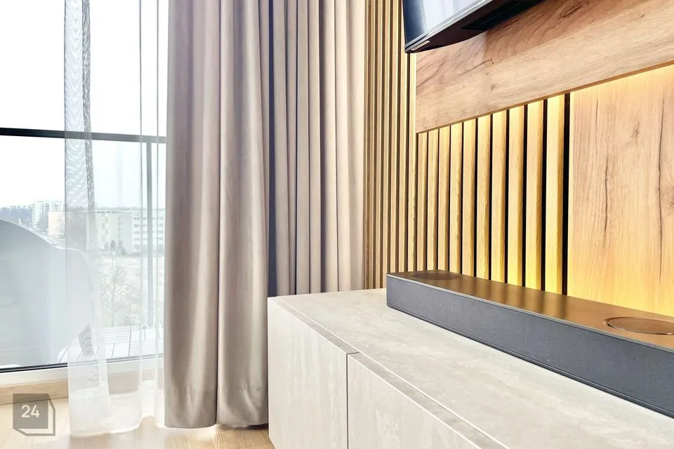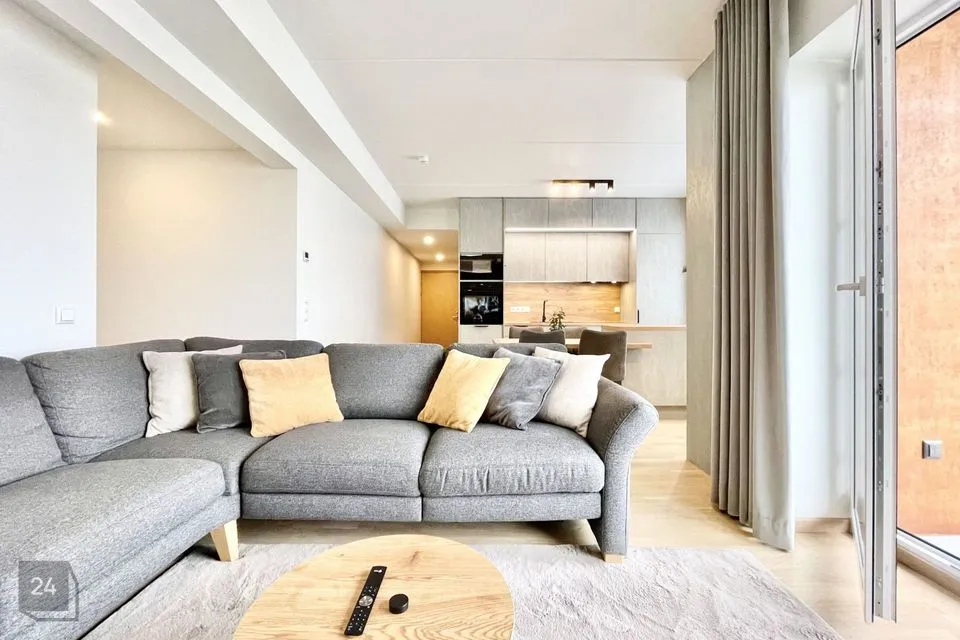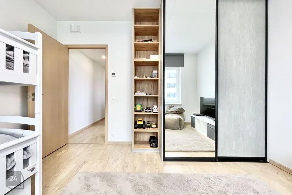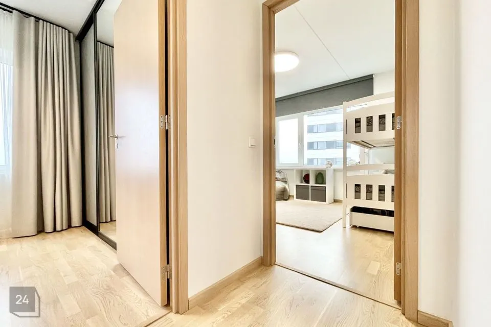 avara ja valgusküllase planeeringuga korteri koosseisu kuuluvad esik/koridor, sektsioonidesse jaotuv elutuba-köök, kaks magamistuba, aknaga suur tualett-duširuum ja merevaatega rõdu