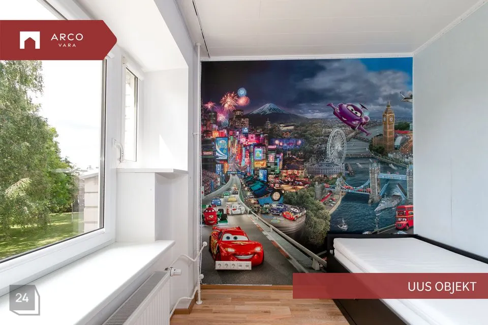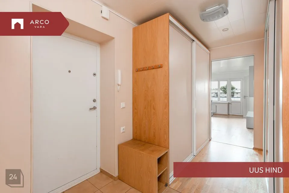 Korteri seisukord lubab koheselt sisse kolida, heledates toonides siseviimistlus, praktiline ruumiplaneering, korraliku köögi- garderoobmööbli olemasolu ja avar rõdu päikeses suunal kõnetavad kindlasti koduotsijat. Korteri läbi maja planeering asetab peamise magamistoa jahedamasse ilmakaarde, korteri keskosas sanitaarruumid ning päikese suunal köök-elutuba ja lisatuba, milles avanevad vaated rohelusse ja mänguväljakule. Korteri omanikul luba kasutada suurt keldrikorruse abiruumi.