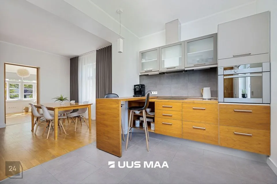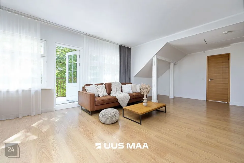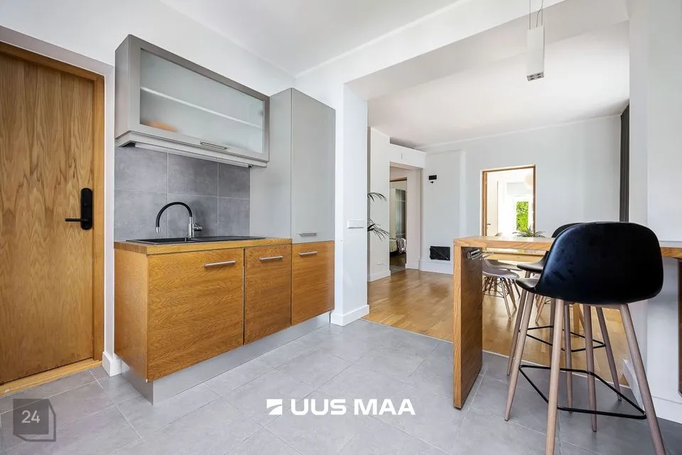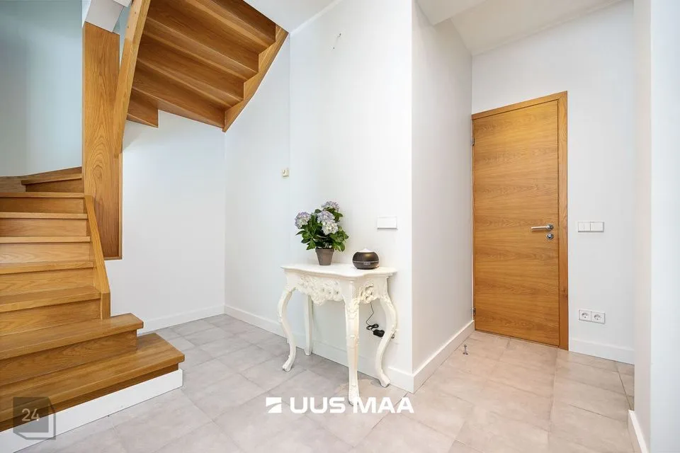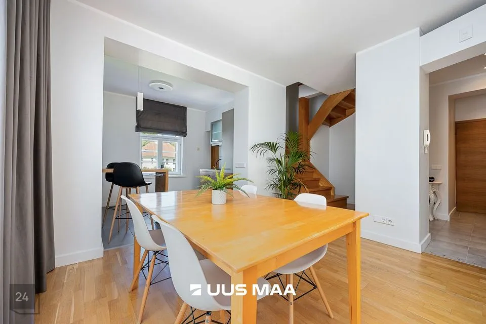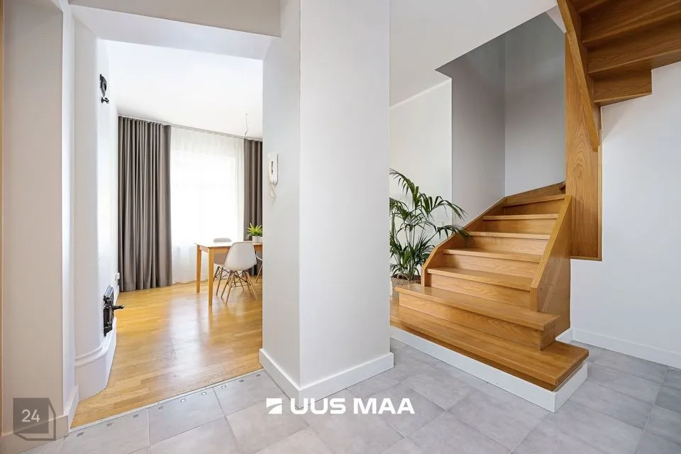 Korter on praktilise ruumilahendusega ja hubane. All korruse põrandaid katab hele ühelipiline tammeparkett, pööningukorrusel on laminaatpõrand. Vannituba on plaaditud elegantses hallikas tonaalsuses. Kogu korterit köetakse vesipõrandaküttega linna keskkütte baasil, reguleerimine on iga toa põhiselt termostaatide abil.