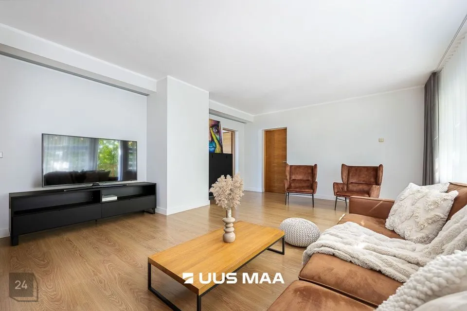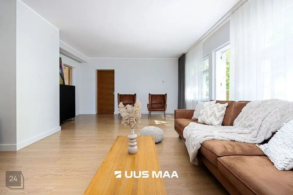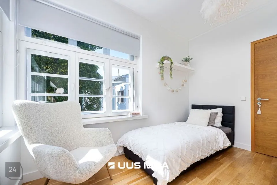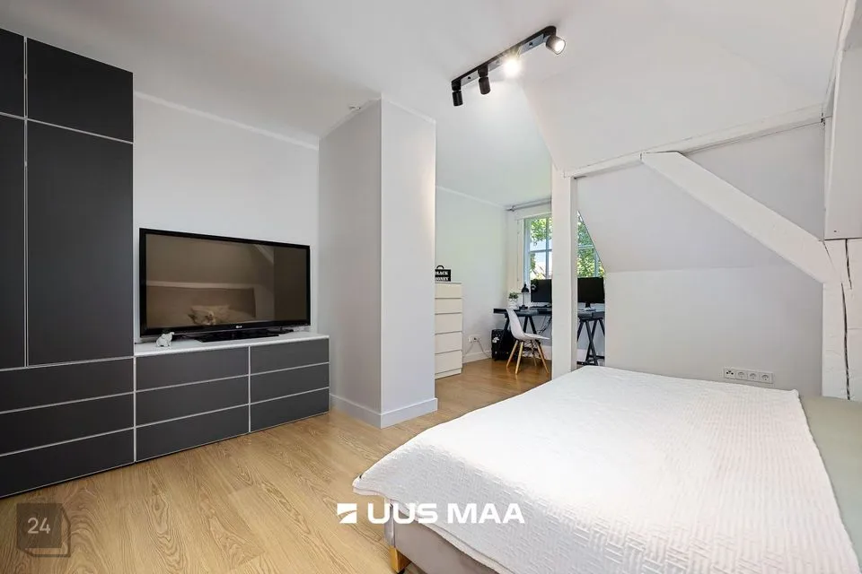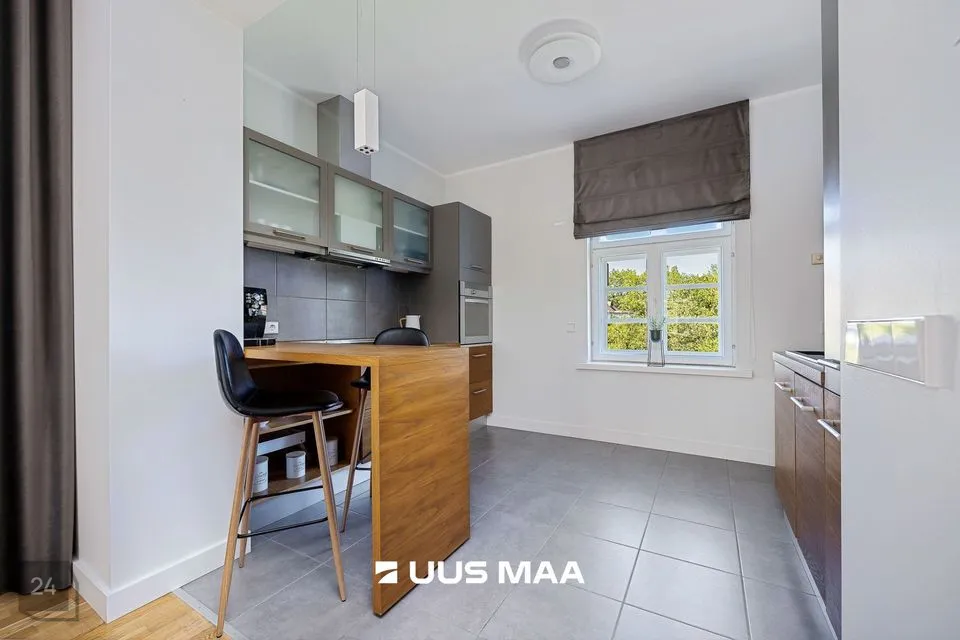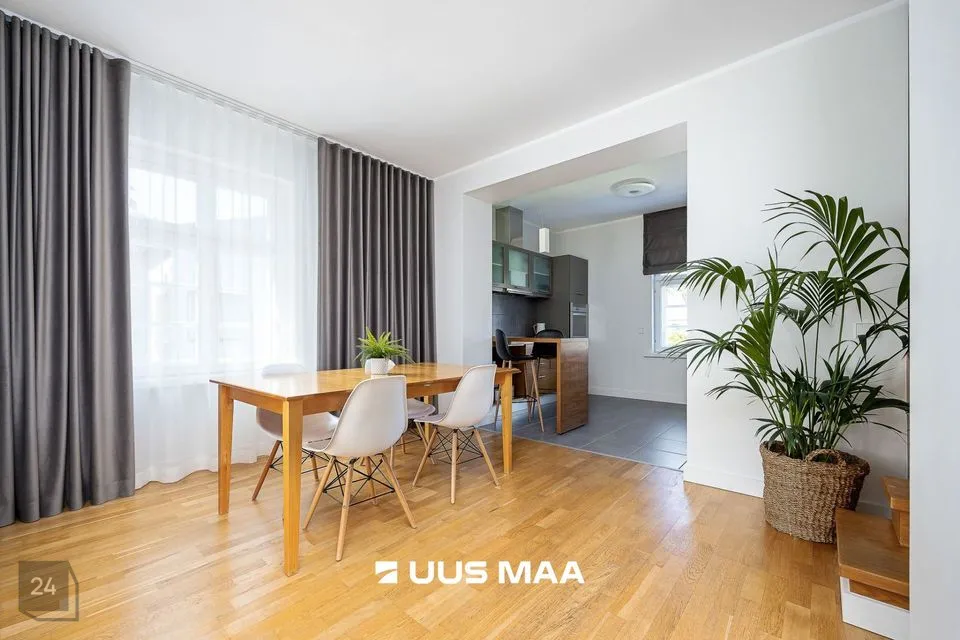 Korter on praktilise ruumilahendusega ja hubane. All korruse põrandaid katab hele ühelipiline tammeparkett, pööningukorrusel on laminaatpõrand. Vannituba on plaaditud elegantses hallikas tonaalsuses. Kogu korterit köetakse vesipõrandaküttega linna keskkütte baasil, reguleerimine on iga toa põhiselt termostaatide abil.