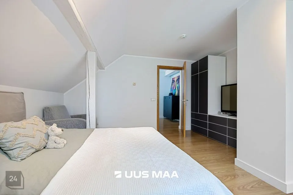 Pööningukorrusel on valgusküllane, 7.3 m2 suuruse rõduga elutuba, mis moodustab koos koridori osaga 32.1 m2; master magamistuba (22.7 m2) hoovipoolse rõduga (7.8 m2) ja walk-in garderoobiga (4 m2); lisaks sellele asuvad pööningukorrusel teine magamistuba (14.5 m2) ja suur vannituba / wc (9.2 m2). Pööningukorrus on täielikult vaid müüdava korteri kasutuses.