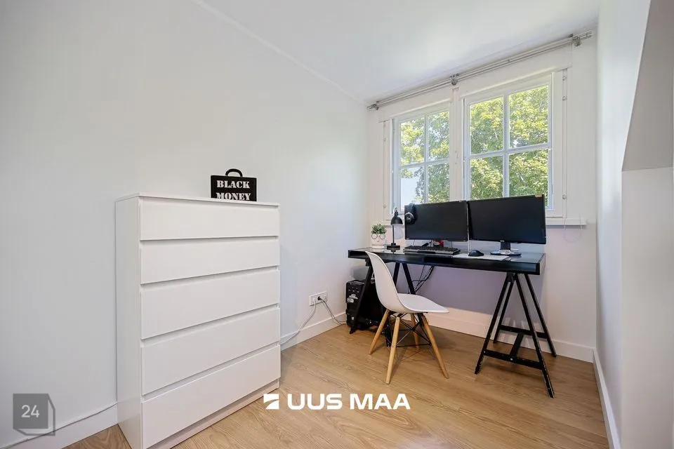 Elutuba koos selle juurde kuuluva mõnusa rõduga on suunatud vaikse ja roheluses tänava poole, mis vaatab lõuna suunda.