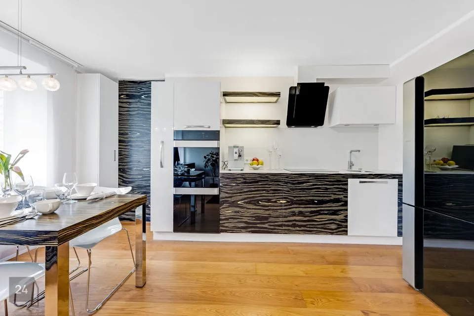 Kogu korteri sisustus on tellitud eritellimusena Mööbliproff OÜ-lt. Enamus mööblist on kaetud naturaalse spooniga või värvitud.