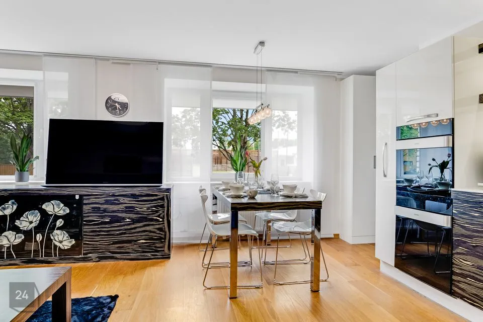 Korteri siseuksed on Haapsalu Uksetehasest, köögitehnika on Gorenjelt. Köögis olemas kõik vajalik: mugaval kõrgusel ahi, nõudepesumasin, külmkapp, kõrge cargo, käteräti cargo, prügikasti cargo ja kõik sahtlid sulguvad push-up süsteemiga, sahtlitel vaikselt sulguvad siinid.