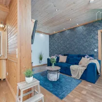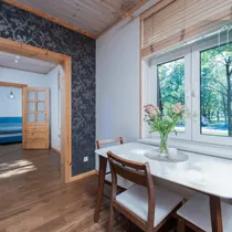Viimistluses on kasutatud kvaliteetseid materjale: täispuitparkett elutoas ja magamistubades, plaaditud põrandad köögis ja vannitoas, puitlaudis laes ning helitõke, mis lisab privaatsust.