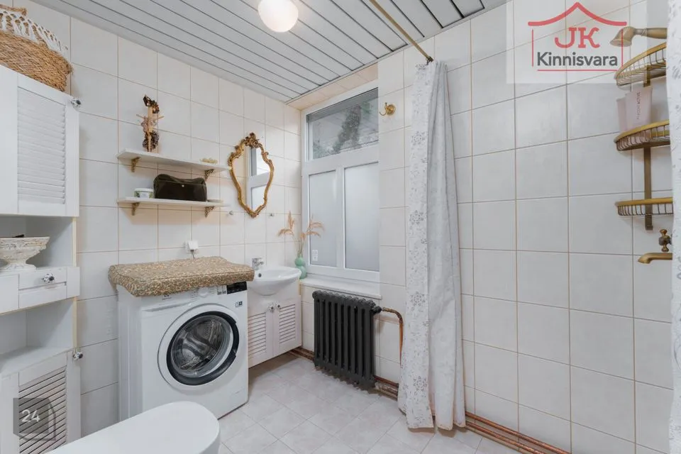Vannituba on hele ja helge, kuid ajastutruude elementidega.