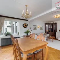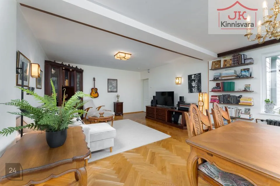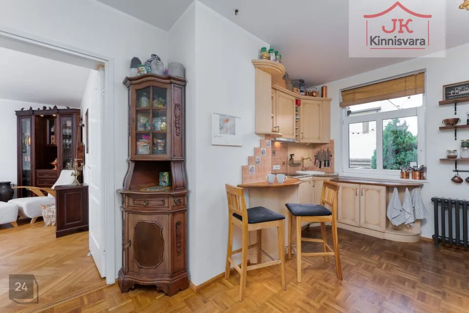 Puidupitsiline katuseäär, valgete lippidega aiapiire, kalasaba-mustriline tammeparkett, paksud palkseinad, lausa kuninglike väljaehitistega kivikatus — siin on need kõik olemas!