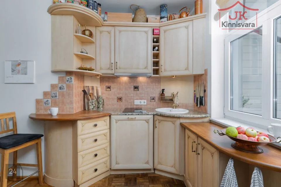 Köögimööbel on klassikalise stiiliga, peites endas ka nõudepesumasinat.