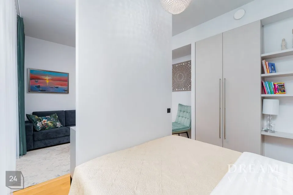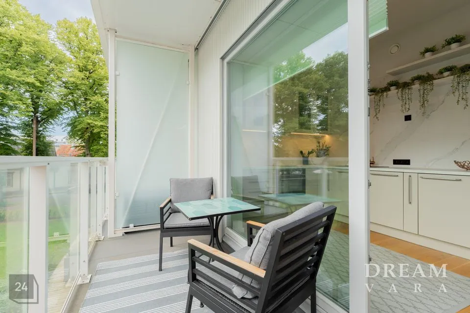 Korterisse on paigaldatud kvaliteetne köögimööbel, maast-laeni ustega garderoob magamistoas ja esikus, vannitoakapp peegliga, valgustid, kardinad, voodi, öökapid, diivan, söögilaud toolidega, TV alus, rõdumööbel - Kõik see on korteri hinnas.