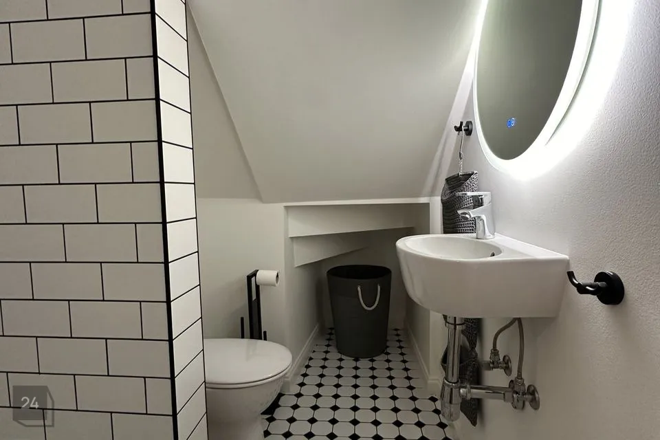 Korteris on kõrged võlvlaed, seinad on krohvitud, põrandatel kalasaba parkett. Pesuruum plaaditud, paigaltatud põrandaküte. Korterit kütab Mitsubishi õhksoojuspump, mis talvel annab sooja ja suvel jahutab.