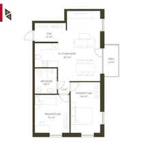 3toaline korter nr 16 (68,8 m² + rõdu 4 m²) asub maja IV korrusel. Tubade suurused on 30,7 m² (elutuba-köök), 14,4 m² (magamistuba) 12,4 (magamistuba) ja lisaks duširuum/WC (4,9 m²) ja esik (5,1 m²). Soovi korral on arendajalt võimalik korter osta koos köögimööbliga (lisandub korteri hinnale, võimalik finantseerida eluasemelaenu koosseisus).