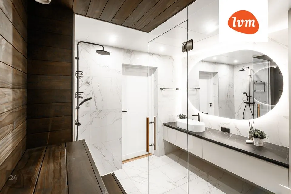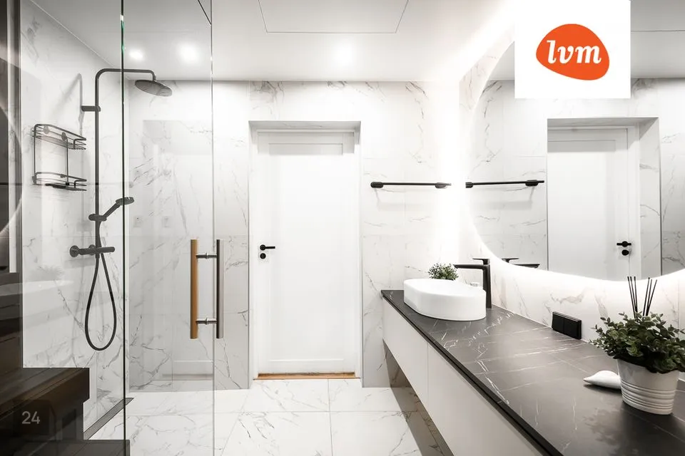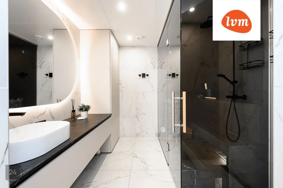 - duširuum kaetud valge marmoriga – luksus igas detailis